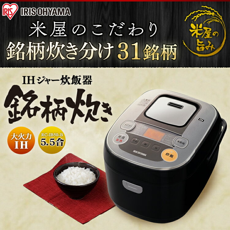 炊飯器 IH 5.5合 RC-IB50-B アイリスオーヤマ 一人暮らし 一人用 ih お粥 おかゆ 銘柄炊き 31銘柄 ジャー 無洗米 白米 炊込み 玄米 煮込 蒸し 省エネ 早炊き ふっくら アイリス 早炊 内釜 大火力 ひとり暮らし