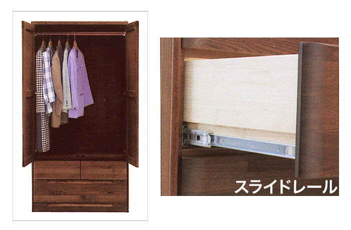 【送料無料/設置無料】 日本製 幅90cm 洋服タンス ブーケ ダークブラウン クローゼット 衣装タンス 重ね仕様 ブラウン 木製 完成品 チェスト 衣装たんす 服吊 タンス