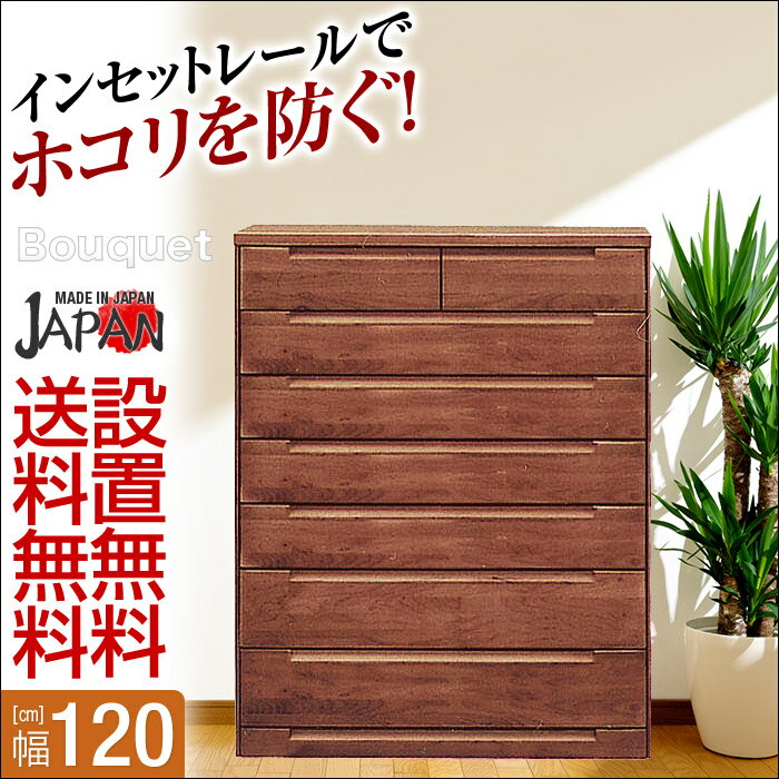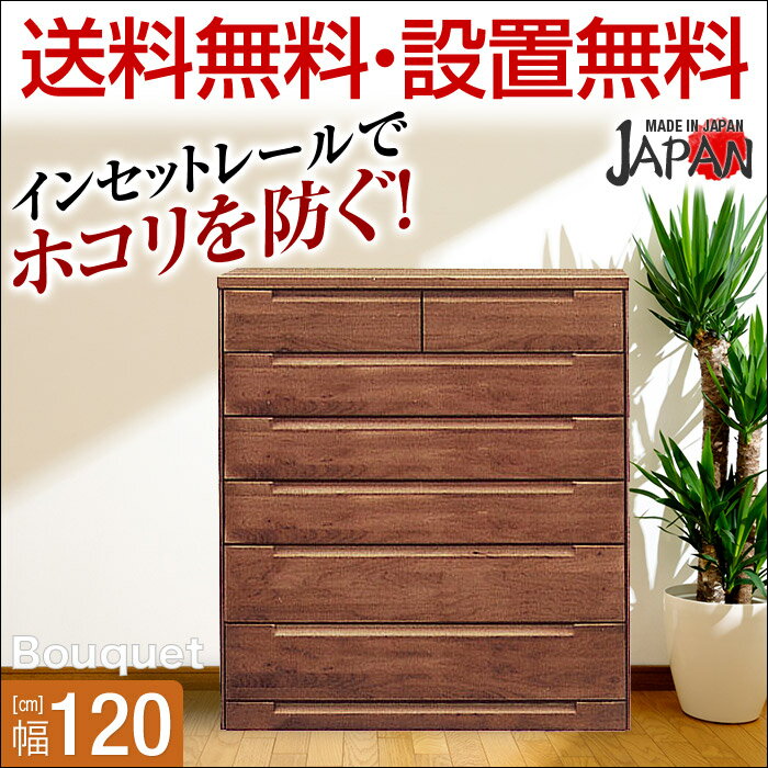 【送料無料/設置無料】 完成品 日本製 幅120cm 7段 ハイチェスト ブーケ ダークブラウン チェスト タンス 幅120cm 木製 衣替え ダークブラウン 北欧 アウトレット