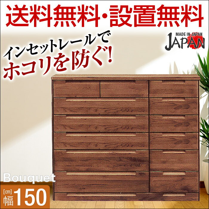 【送料無料/設置無料】 完成品 日本製 幅150cm 7段 ハイチェスト ブーケ ダークブラウン チェスト タンス 幅150cm 木製 衣替え ダークブラウン 北欧 アウトレット