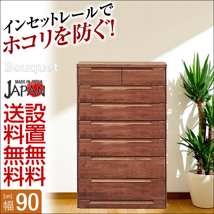 【送料無料/設置無料】 完成品 日本製 幅90cm 7段 ハイチェスト ブーケ ダークブラウン チェスト タンス 幅90cm 木製 衣替え ダークブラウン 北欧 アウトレット
