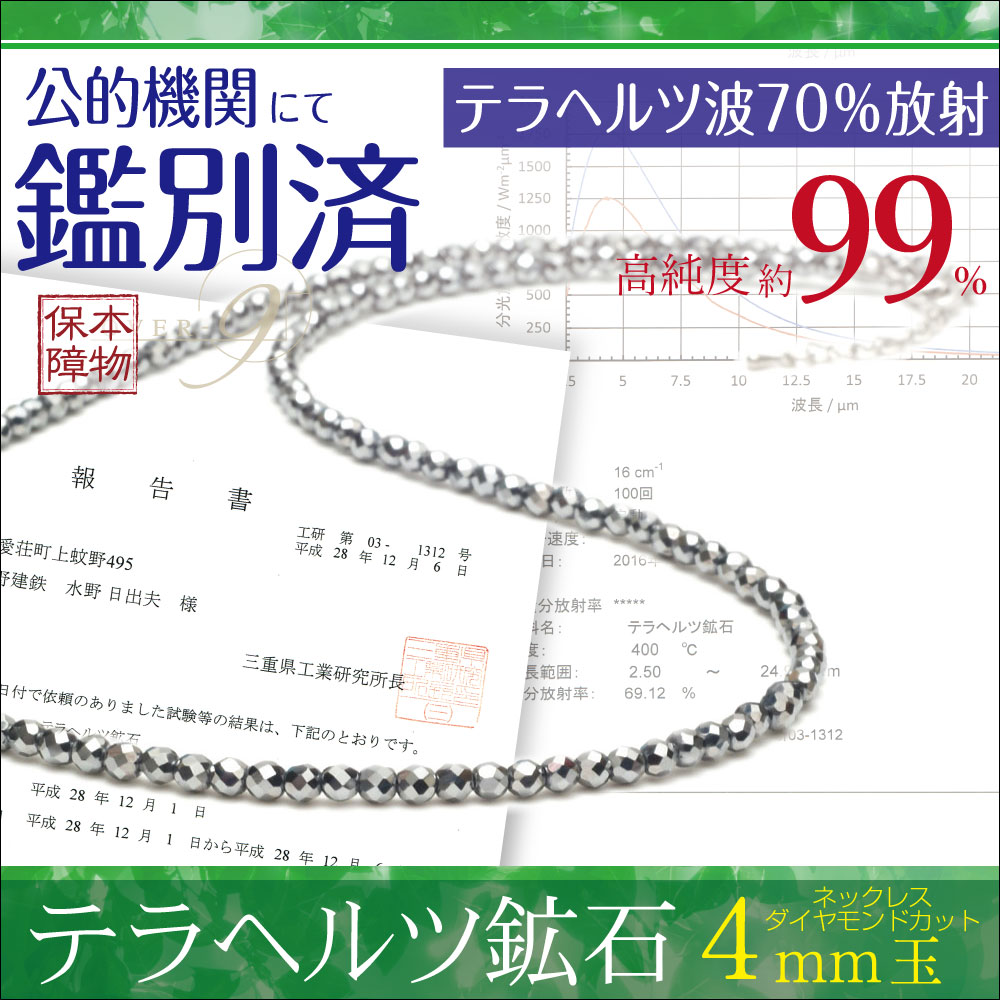 【テラヘルツ ダイヤモンドカット ネックレス 4mm玉 約60cm サイズ】公的機関にて検査済み 超遠赤外線 効果 効能 ドイツ産 テラヘルツ鉱石 丸玉 原石 健康 天然石 メンズ レディース 珪素