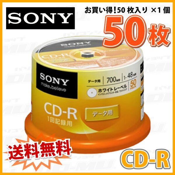 【記録メディア】 SONY(ソニー) CD-R データ用 700MB 1-48倍 ワイドホワイトレーベル 50枚スピンドルケース (50CDQ80GPWP) 【送料込み※沖縄・離島を除く】【RCP】◎
