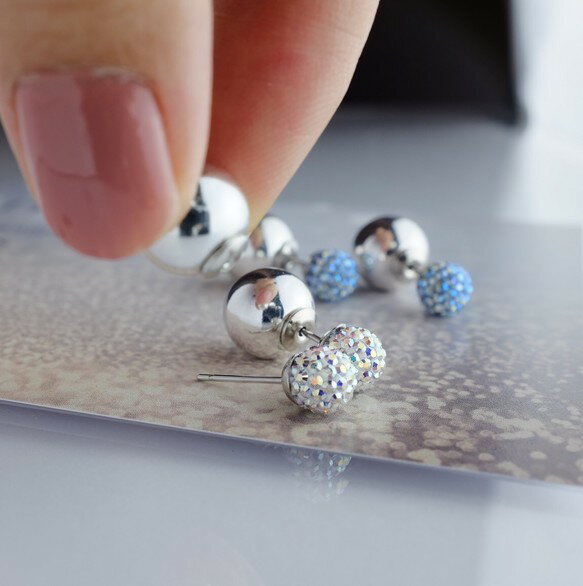涼しい色合いのパヴェボールとボールバックキャッチのリバーシブルピアスです。